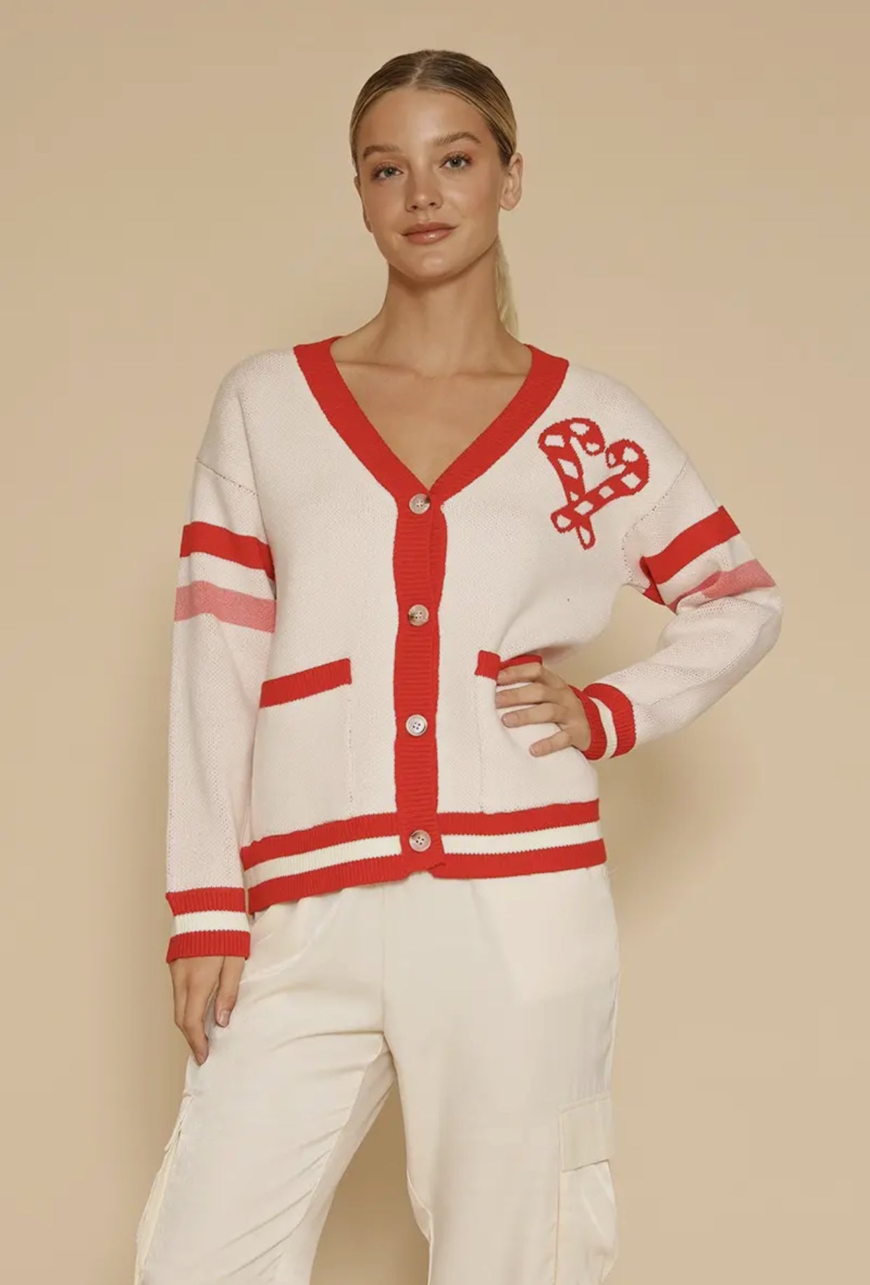 This Candy Cane Sweater is both festive and functional. The loose fit allows for comfortable wear, and the cardigan style offers versatility in layering. Perfect for holiday events or casual wear.