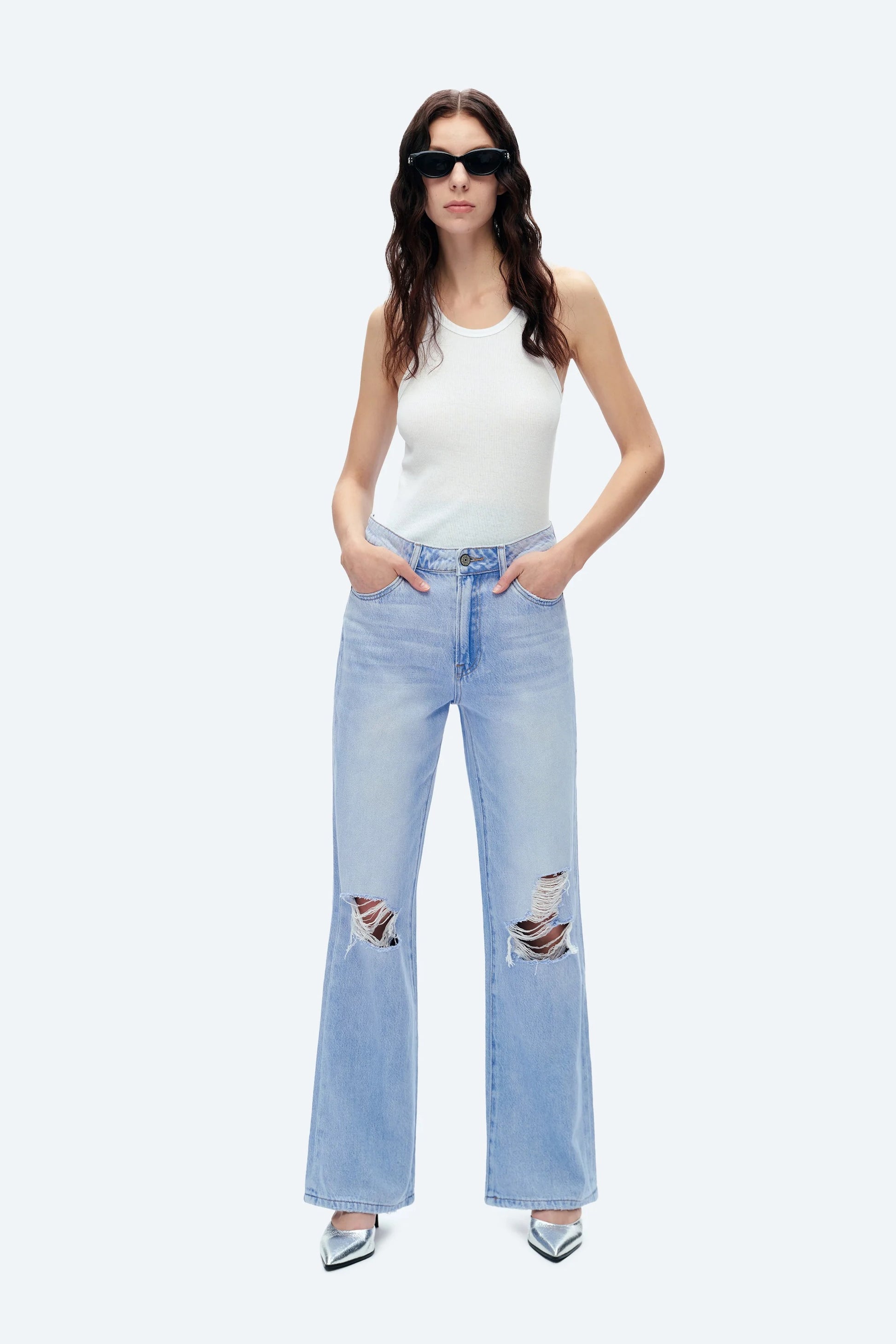 Distressed High Rise Wide Leg