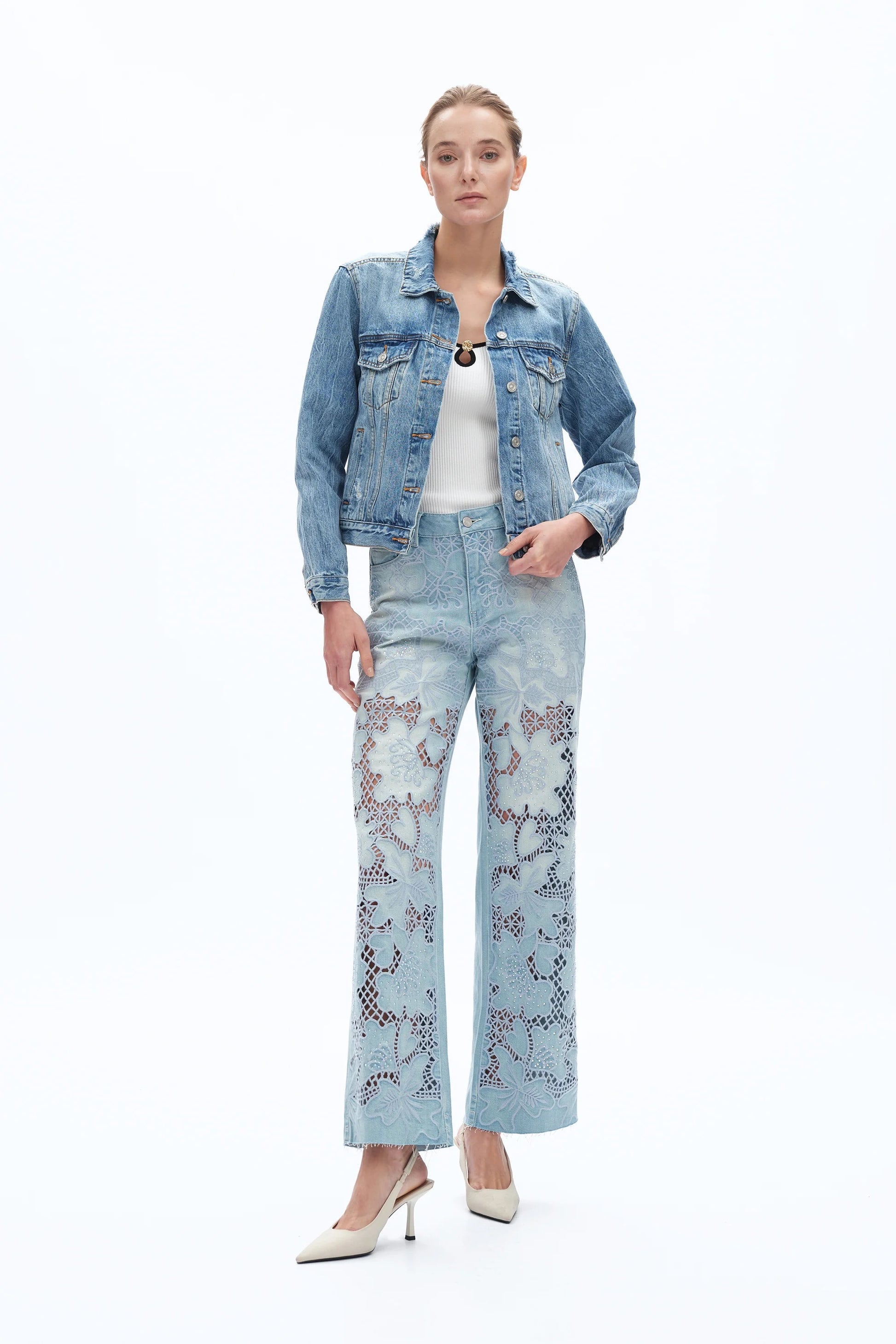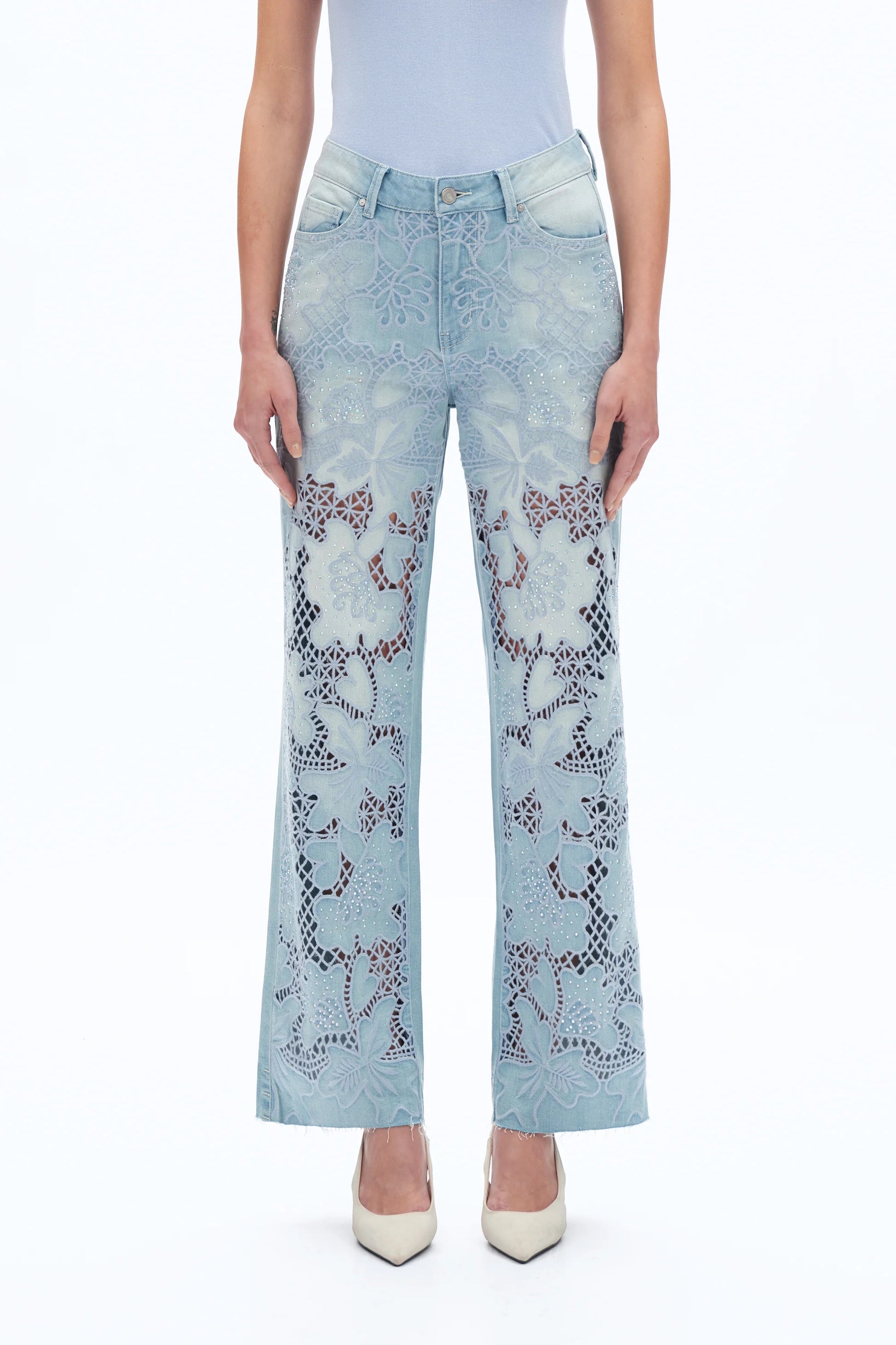 Embroidered Rhinestone Jeans