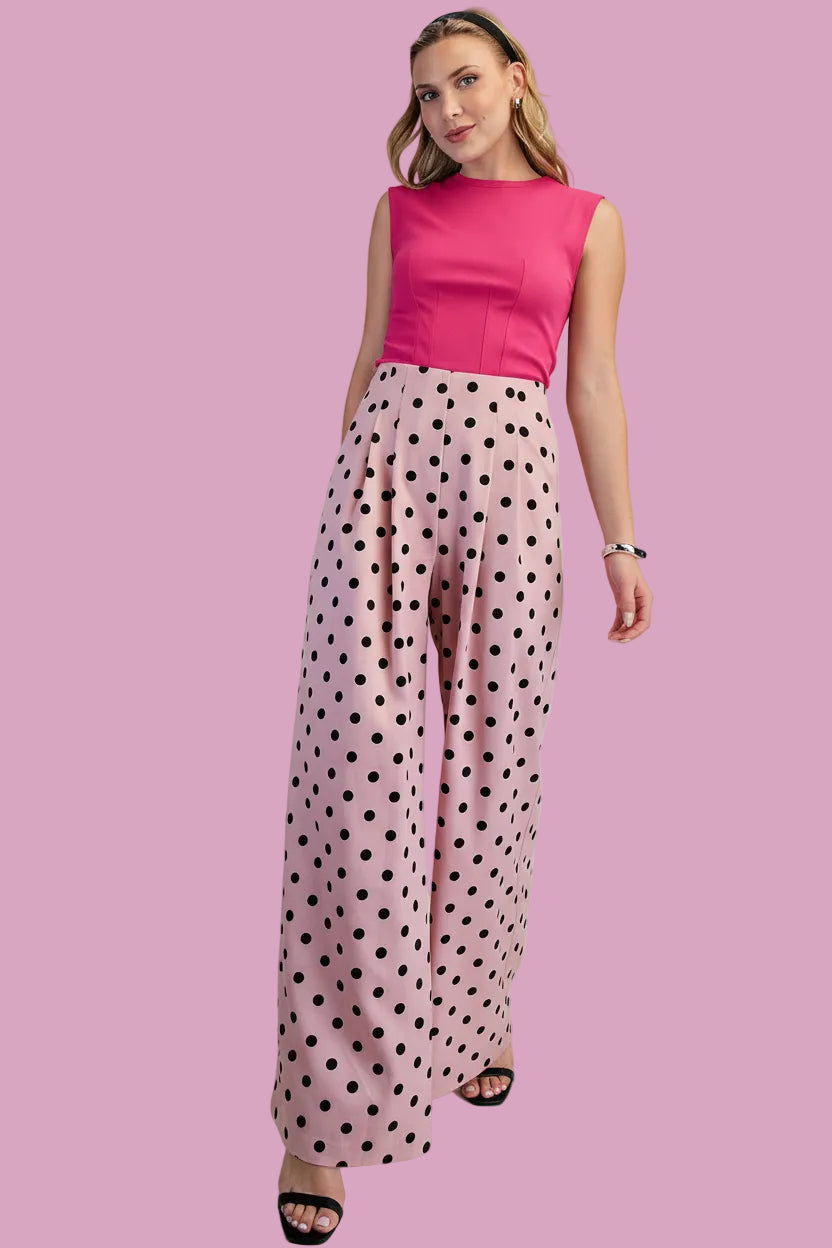 Step into the limelight with the Annie Pants! Decked out in playful pink polka dots, these high-waisted wide-leg wonders are perfect for twirling through life (literally!). With pleats that say, “I’m fun but sophisticated,” you can rock them from brunch to boogie night. Who says grown-ups can’t play dress-up?