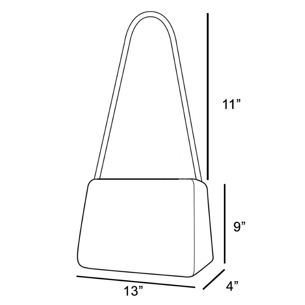 This hand bag approximately measures (Inches): L: 13 Depth: 4 H: 9 90% POLYESTER 10% ALLOY