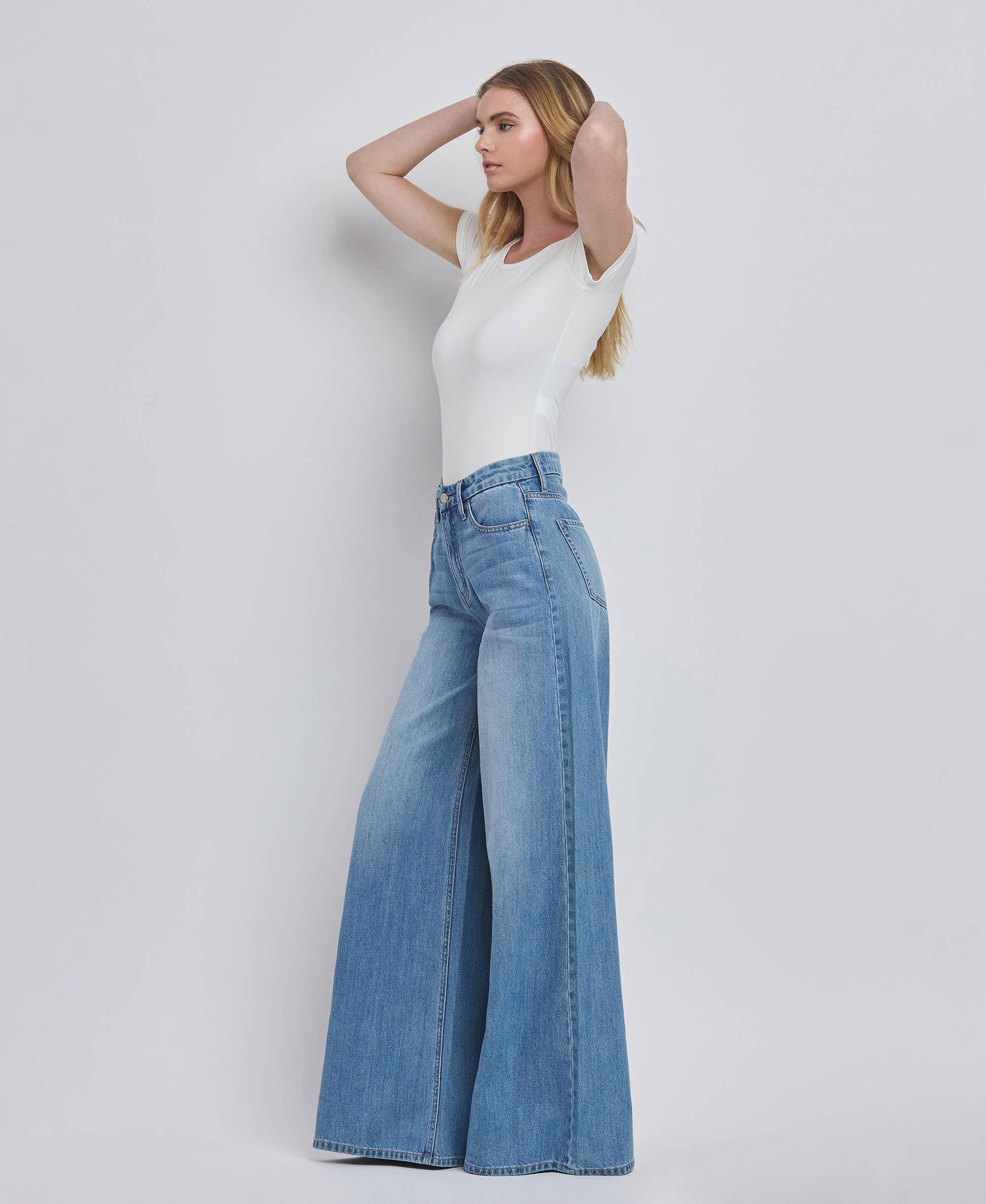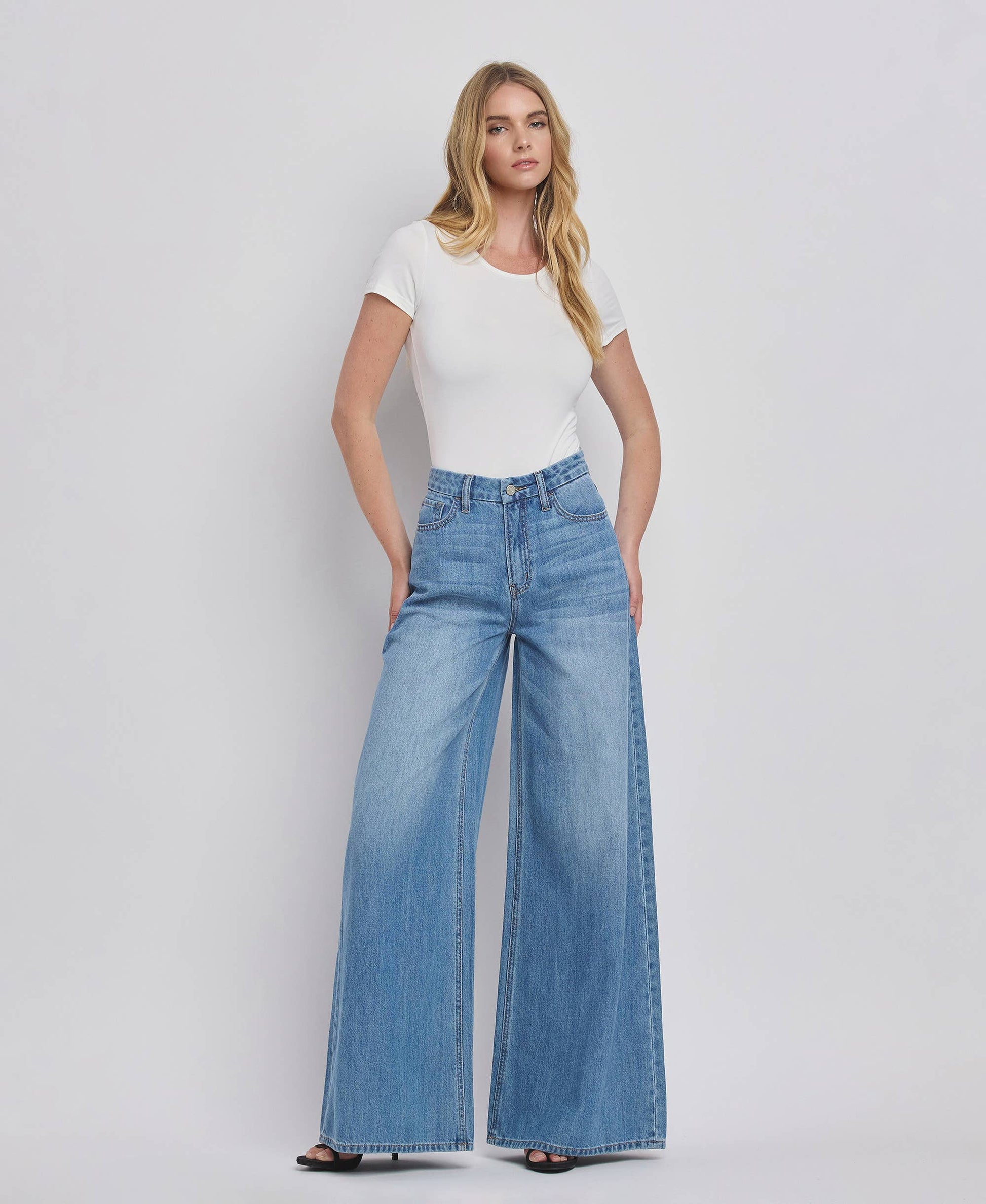 SUPER HIGH RISE WIDE LEG JEANS COMFORT STRETCH DENIM, SUPER HIGH RISE WAIST, FINISHED HEM, FULL LENGTH, WIDE LEG JEANS F.