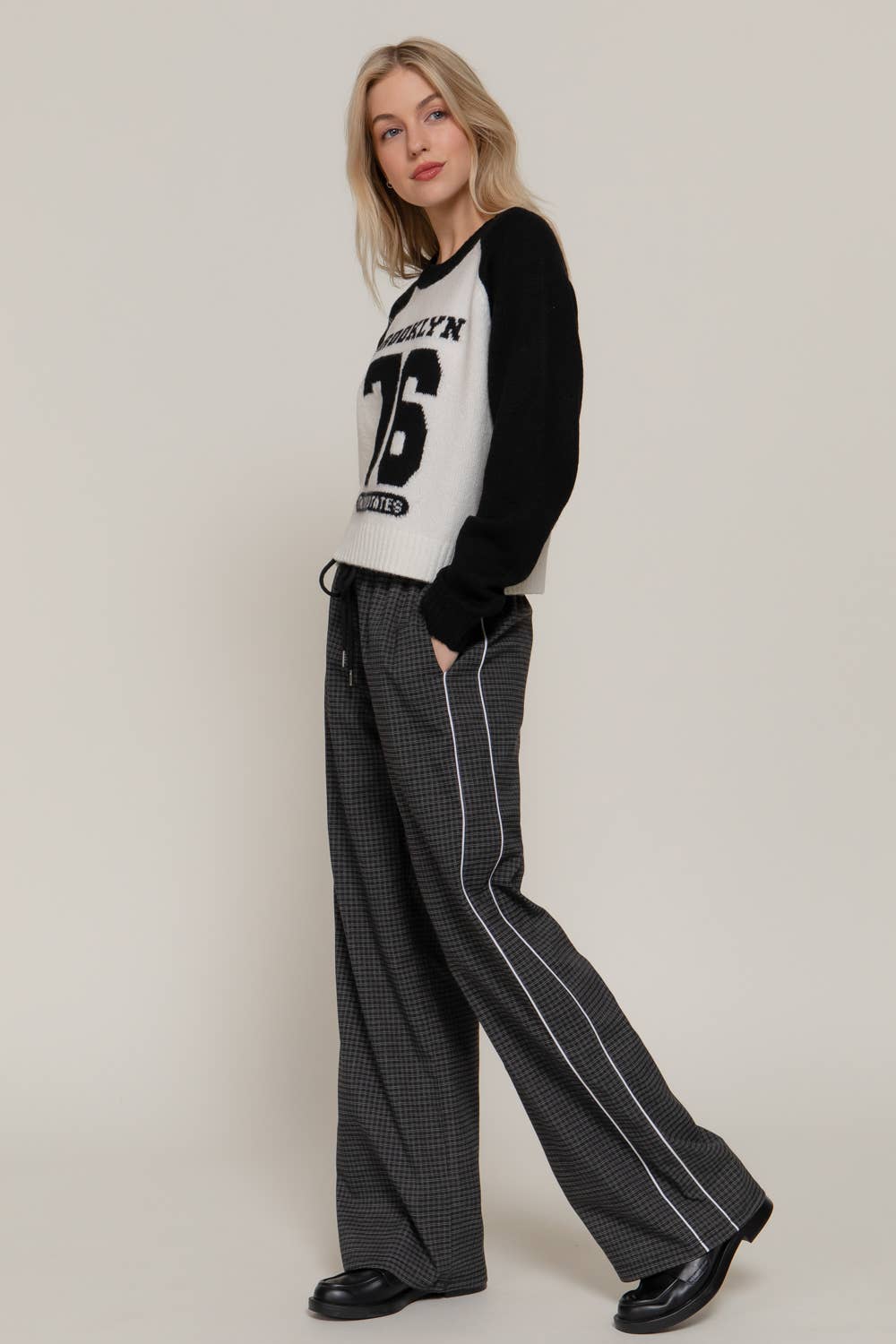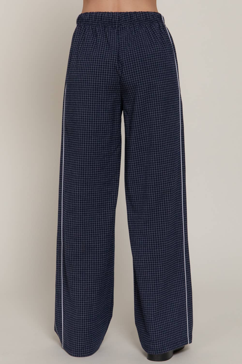 WAIST BAND WITH STRING CHECK WOVEN LONG PANTS