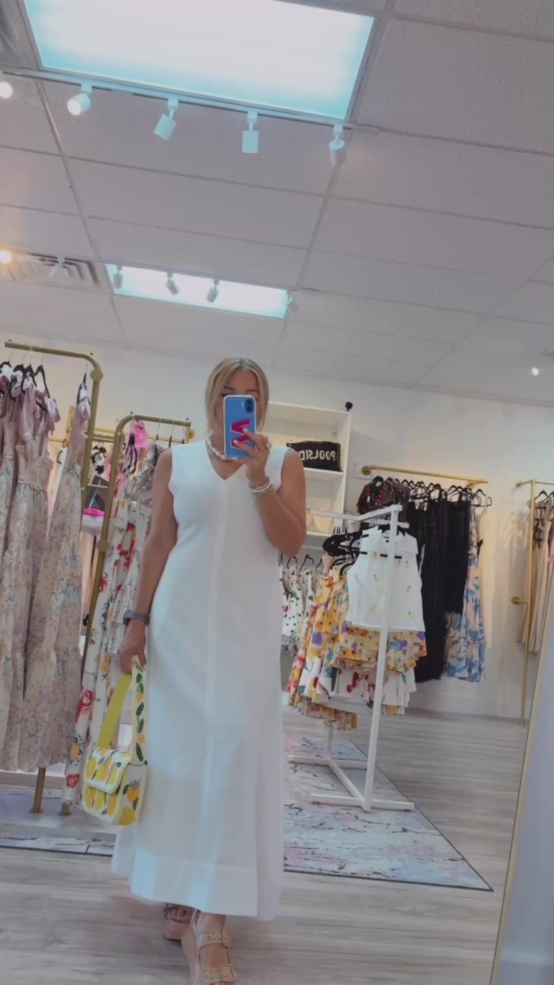 Step out in style with this playful white maxi dress featuring convenient pockets and a discreet back zipper. Its flowing silhouette keeps you comfortable and chic, perfect for sunny days or breezy evenings. Embrace effortless elegance with a touch of fun!